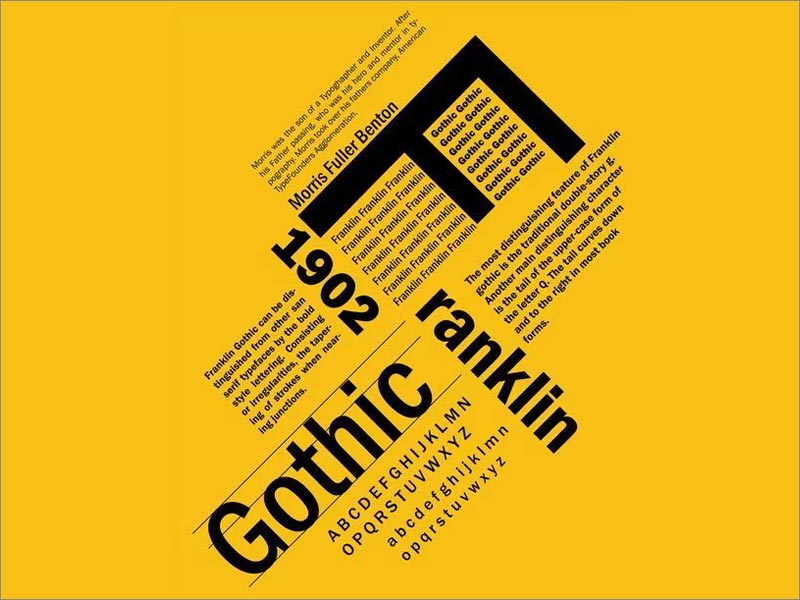 它们以其特质,不均匀的重量和不规则的曲线而闻名,出于这个原因,像新闻哥特式和富兰克林哥特式这样的字体应该为你的文本带来一些特征。