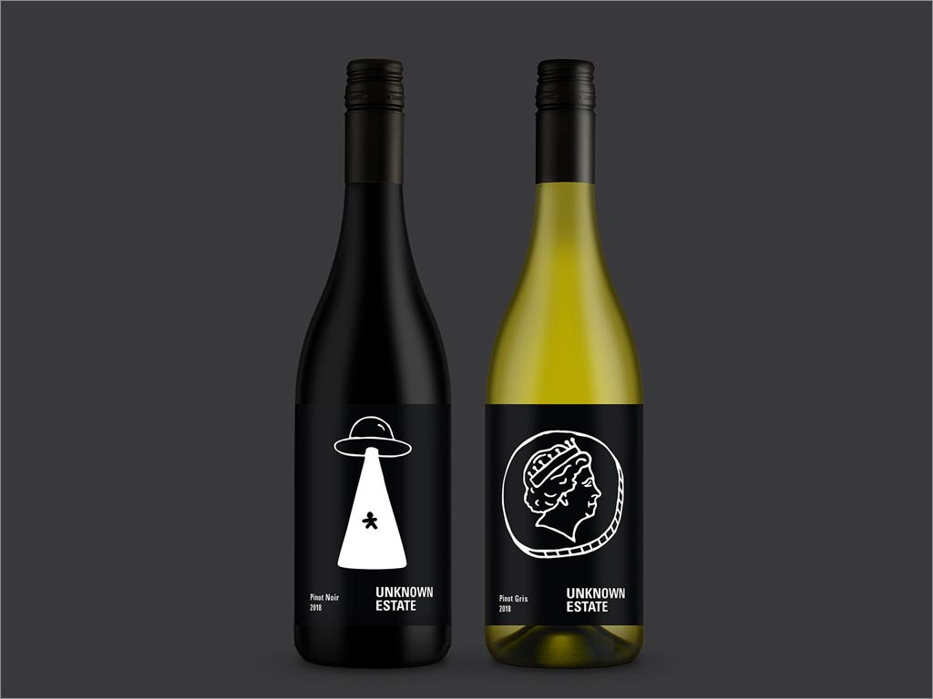 葡萄酒自远古时代就开始生产和消费,Look At That设计公司则以休闲风格创作了Unknown Estate葡萄酒包装设计,以吸引和鼓励饮酒者,Unknown Estate已成为最传统的类别之一,并且正在挑战人们的认知方式。风味描述符是一个很好的起点。形容词填充的描述符在酒瓶的背面很常见。诸如优雅的葡萄酒,令人印象深刻的结构和令人垂涎的水果风味等术语。Unknown Estate葡萄酒包装设计使用图表来说明3-4种主要风味以及它们如何混合和相互作用,突出大调以及微妙的完成效果,以呈现口味。客户已经开发出有趣的方法来从劣质酒中识别出好酒。无论是根据获得的闪亮金牌数量来购买,还是总是出于担心实验而购买同一瓶酒的想法,或者只是选择一个“酷”的标签。Unknown Estate希望,借助从图解风味描述中获得的更多知识,购物者将在选择葡萄酒时充满冒险精神并尝试。Unknown Estate珍视葡萄酒包装设计,会标、山坡、房地产建筑和脚本字体是葡萄酒类别的常见视觉规范。Unknown Estate的标签探索未知。它们以不准确和古怪的插图样式呈现,以与现状形成对比。最小的无衬线字体,黑白印刷和零装饰,呈现出一种诚实,好玩,脚踏实地的葡萄酒包装设计。