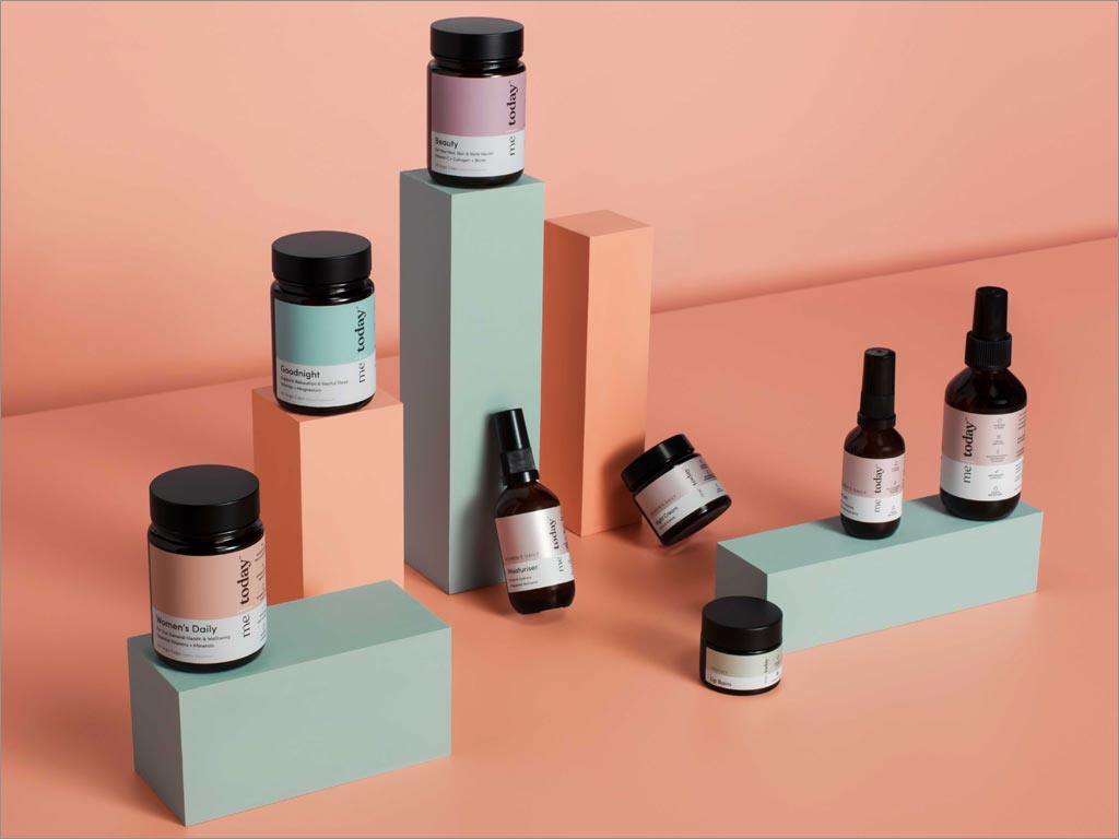 me today护肤品与保健品包装设计通过使用柔和的色彩,优质的包装材料和经过微调的版式,打破了其他化妆品品牌的传统外观和信息,呈现出高级,舒适和现代的外观。个人最好的感觉对每个人都是不同的,但是我们都知道什么时候我们感觉不到最好。忙碌是每天的现实,但有趣的是,当生活变得缓慢时,我们说不。为什么?因为我们不想。生活不应该强迫我们妥协或做出牺牲。我们希望以自己的方式过上最好的生活。me today护肤品通过为您提供满足身体需求的最佳产品来帮助您释放压力,向往美好的明天,同时还通过教育来滋养和增强您的思维。他们的护肤系列不含对羟基苯甲酸酯或邻苯二甲酸盐,并且富含植物药,抗氧化剂和维生素。他们的补品由优质配方制成,具有高度吸收性的成分,易于消化和发挥最大功效。该品牌可以为消费者的健康,保健和美容需求提供现代替代方案。流程始于创建一个名称,该名称囊括了“在不妥协或做出牺牲的情况下过着最好的生活”的品牌精髓。在探索了许多不同的领域并与我们的客户紧密合作之后,最终的结果是今天美丽而令人回味和鼓舞人心的me today护肤品包装设计。为了设定视觉语言的基调,必须在当今的品牌中反映出品牌的透明价值及其与每个消费者的紧密联系。这是通过引入优雅的衬线字体实现的,该字体具有小写字符和经过深思熟虑的间距,以非常个人化和安静权威的语调讲话。然后,在两个单词之间集成了一个简单的竖线,以添加一个令人难忘的图形元素,并确保每个关键词都可以独立考虑,并具有整体性陈述。信息的这种简单性和清晰度随后被应用于保健品和护肤品包装。所有“物理”包装均由玻璃或可回收纸板制成,这与品牌的环境价值直接相关。琥珀色的玻璃还增加了内在的完整性,并启发了药剂师的传统。然后,通过锐利的图形设计程序将当代生活方式的精神融入其中,从而在强大的货架影响力和易于导航的消费者之间取得平衡。独特的色彩阻挡功能清楚地区分了每个类别,干净的“空白”面板以功能一致的方式容纳了所有关键信息。还创建了简单的图标,以在视觉上支持产品优势并增加消费者互动。me today护肤品与保健品包装设计的色调已被仔细考虑,因为颜色心理在消费者的决策过程中起着巨大的作用。每个类别的最终呈现形式都是足够强的色调来表示功效,但又足够微妙以产生舒适感和放心感。然后将护肤产品范围内的产品与相关的保健品类别紧密结合,但使它们的色调值更浅,并添加了珠光清漆。这产生了一种柔和的,“以美容保健为导向”的情绪,这与目标人群有关。最后,所有me today护肤品与保健品包装设计的标签和纸箱均具有柔和的哑光效果,并引入了选择性压花以增加高档感。