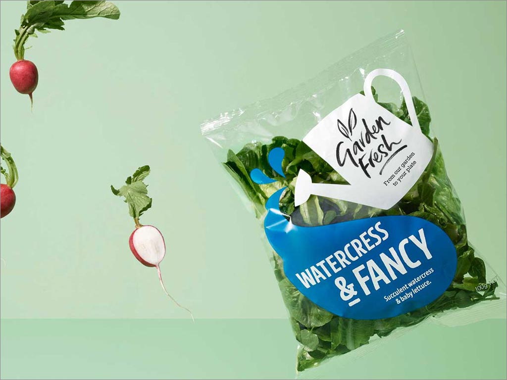 Living Foods是一家家族经营的园艺企业,专门从事鲜切蔬菜沙拉。在为零售和食品服务行业提供产品超过25年之后,我们的客户认为是时候创建自己的品牌了,因此,Garden Fresh应运而生。Garden Fresh蔬菜品牌logo包装设计简单明了,每个购买健康食品的人都可以欣赏。透明的塑料袋包装使消费者可以看到他们要购买的东西。通过使用不同的颜色来标识不同类型的蔬菜,该颜色表示由白色喷壶向其浇注的“水”,简单但有效的包装设计使消费者可以专注于他们所消费的商品。除了所有流行的绿色蔬菜,Garden Fresh还引入了异国情调的夏季黄油生菜及其独特的Metro Mix和Watercress&Fancy混合风味,为这一类别增添了新鲜感。由于他们的所有产品都在北岛和南岛种植和包装,因此无论在新西兰何处,它们也确保为消费者提供最大的新鲜度。