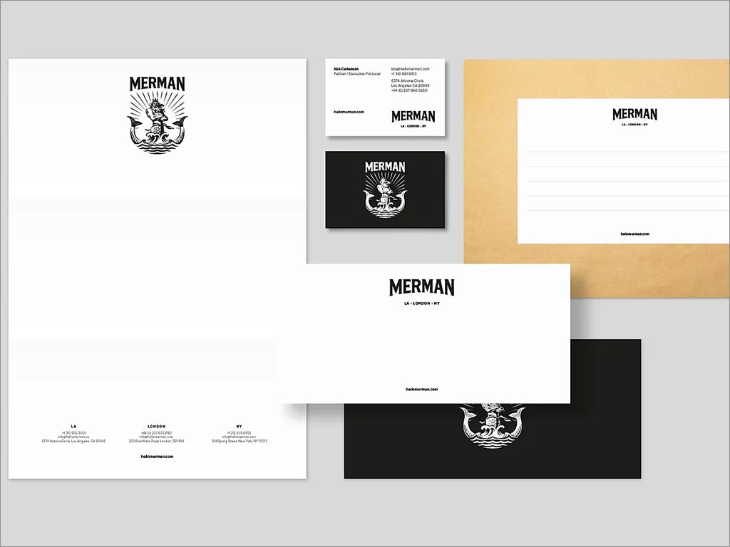Merman是BAFTA获奖的独立媒体制作公司。它从在英国制作电影和电视发展到在全球创建品牌内容和广告。该公司需要在伦敦,洛杉矶和纽约设有办事处,因此需要对其品牌进行更名,以反映其作为一家自信,自豪的独立创意企业的地位。almightybrands设计公司在进行英国Merman独立媒体制作公司品牌形象logo设计创作中创建了一个充满活力的人鱼符号和文字标记,它设计得足够简单,可以在屏幕上工作,同时散发出个性,大胆的水蓝色调色板将所有在线和离线通信联系在一起。效果是现代的,与公司长期致力于幽默和替代价值的精神相吻合,品牌效应帮助公司成功地在新领域和服务中竞争。