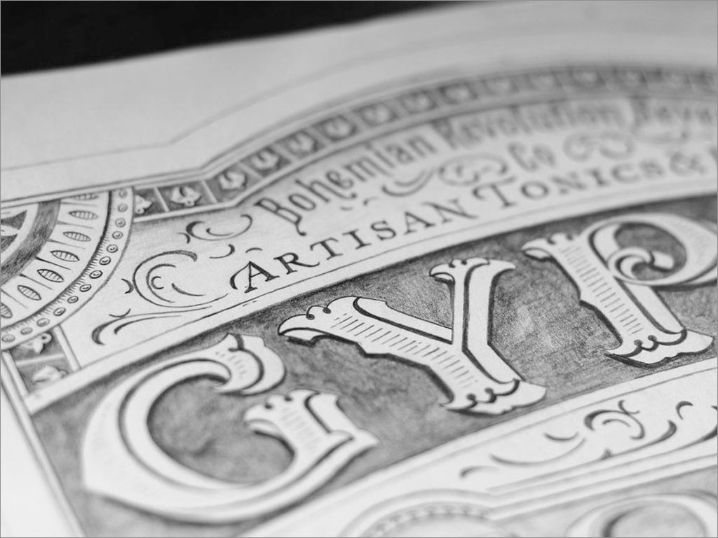 汤姆·莱恩(Tom Lane):布兰登(Brandon)对他想在标签中包含的内容有一个明确定义的想法。他解释说,他有叙述要传达的特定图像,他想做到这一点,同时捕捉到1800年代药剂师的现场氛围。我在工作中遇到了这些限制,我很高兴做到这一点,因为我相信这一切都与产品非常吻合-这似乎是一个可靠的策略。有了这些决定,我便能够通过铅笔素描探索标签的布局。我一开始会做些零散的工作,目的是快速查看点击次数。然后,我转到更大的布局,并开始将想法付诸实践。我创建了几个变体,并获得批准,可以将其中一个变体移至下一阶段。然后,主要的工作才真正开始,将带有所有定制刻字,插图和装饰的详细草图变成矢量艺术品,但是,通过该过程,我可以收紧并提升艺术品。一旦在矢量中进行了设计,我就可以更多地控制其组件。经过几轮色彩探索,我们获得了最终结果。